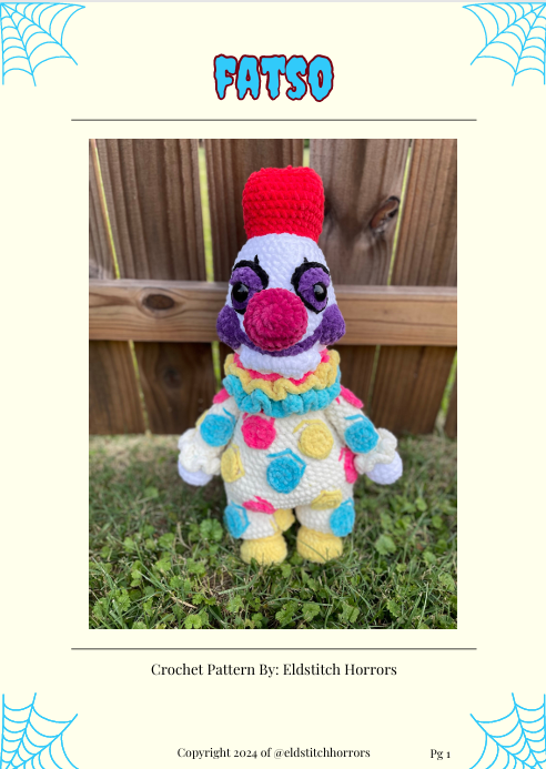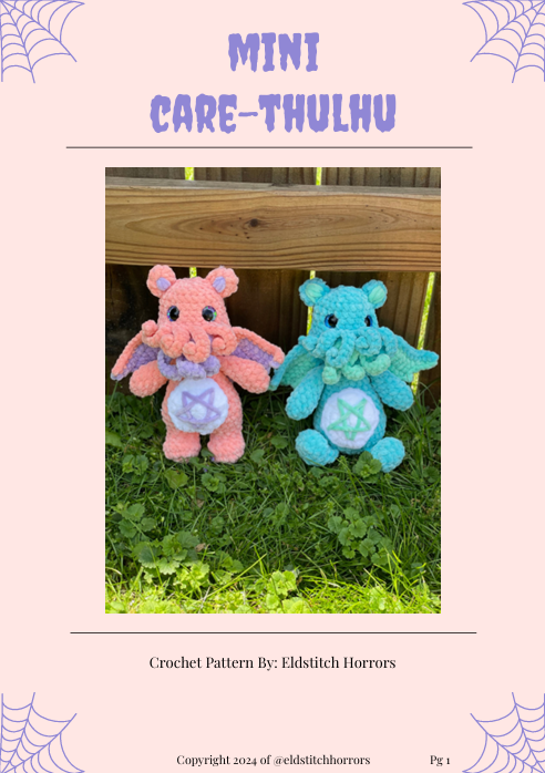 Categories: All Ready to Ship Plushies Crochet Patterns All | Ready to Ship Plushies | Crochet Patterns | Killer Klown Cotton Candy Ray Gun- Crochet Pattern $5.50 Terrifying Teddy Crochet Pattern $5.50 The Bleeding Duck Crochet Pattern $5.50 Bundle Crochet Patterns: The Bleeding Duck & Terrifying Teddy $8.75 Killer Klown Cotton Candy Cocoon Crochet Pattern $5.50 Popcorn Killer Klown $6.50 Trio of Tricksters Crochet Pattern Bundle $10.00 The Receptionist Crochet Pattern $6.50 Jack Crochet Pattern $6.00 Wendy Crochet Pattern $6.00 The Overlook Lovers $9.00 Psychopathic Cyclops Crochet Pattern $5.50 Chunky Nuggs Crochet Pattern $5.50 Sir Demon Snake Crochet Pattern $6.00 Radio Sinner Crochet Pattern $6.50 The May Queen & Bad Boyfriend Bundle Crochet Pattern $9.00 The May Queen Crochet Pattern $6.00 The Bad Boyfriend Crochet Pattern $6.00 Care-thulhu Crochet Pattern Bundle $8.75 Care-thulhu (Standard Size) Crochet Pattern $5.50 Care-thulhu (Mini Size) Crochet Pattern $5.50 Punk Rock Bear Crochet Pattern $5.50 Bapho-bear Crochet Pattern $5.50 The Jackal Crochet Pattern $6.50 Shorty Crochet Pattern $6.50 Slim Crochet Pattern $6.50 Jumbo Crochet Pattern $6.50 Fatso Crochet Pattern $6.50 Klown Bundle Crochet Patterns $20.00 The Neitherworld Couple Crochet Pattern $10.00 Lydia Crochet Pattern $6.50 Beetlejuice Crochet Pattern $6.50 Baby Creature Crochet Pattern $6.00 Mini Cotton Candy Cocoon Ray Gun Crochet Pattern $3.50 Zombie Gingerbread Man Crochet Pattern $5.50 Garden Bears Crochet Pattern $6.50 The Count Crochet Pattern $6.50 Baby Popcorn Klown Crochet Pattern $6.50 Pinhead Crochet Pattern $6.00 Mothman & Lady Lamp Crochet Pattern $6.00 FrankenBear & Bat Crochet Pattern $6.00 Trick-r-Treat Bears Crochet Pattern $6.50 Pumpkin Cat Crochet Pattern $5.50 Woodland Jersey Devil Crochet Plushie $250.00 Pumpkin Nutcracker Crochet Pattern $6.50 Ghost Lava Lamp Crochet Pattern $5.50 Boo Buckets: 3-in-1 Crochet Pattern Bundle $5.50 Snothulu Crochet Pattern $5.50